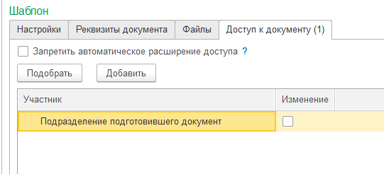 Как расширить доступ к документу на подразделение автора в системе 1С: Документооборот с помощью автоподстановки