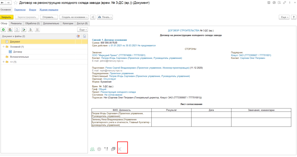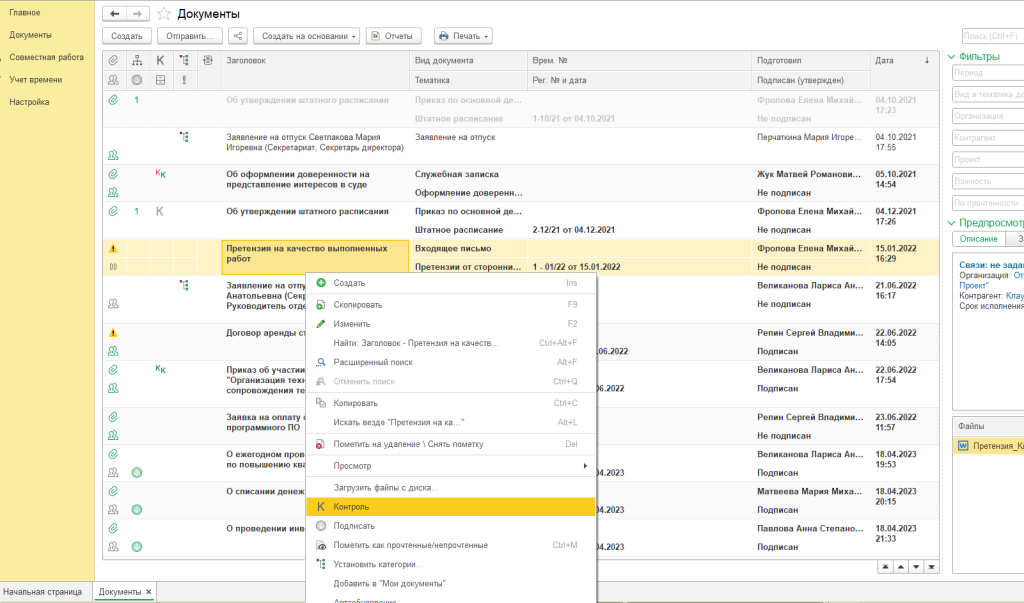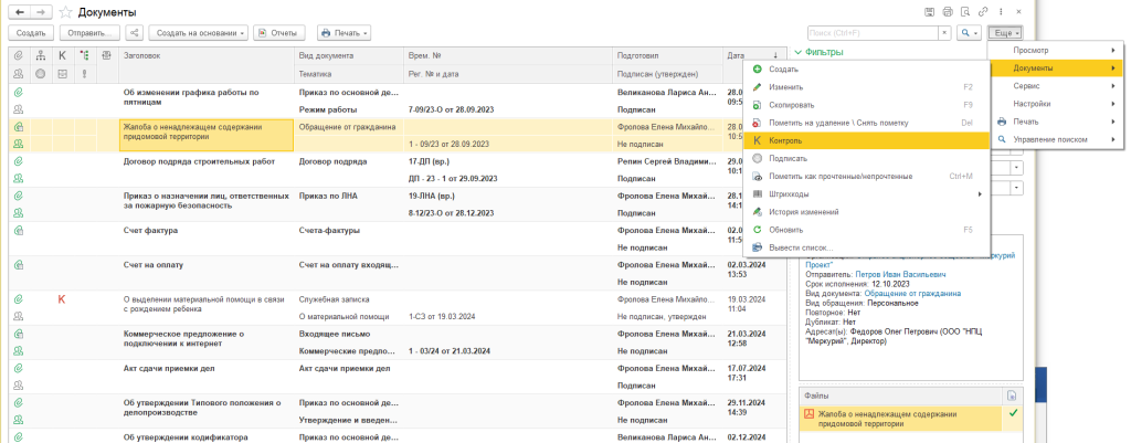 Контроль объектов в программе 1С:Документообороте 3.0