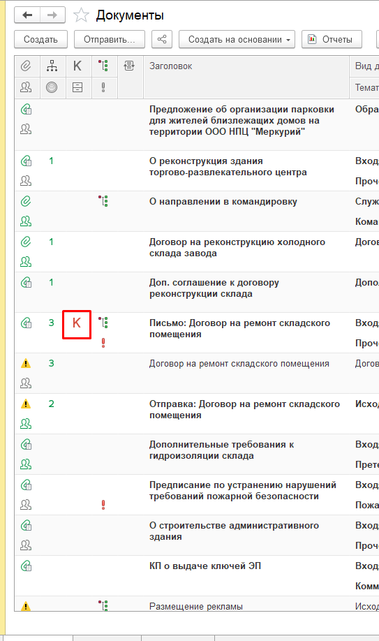 Стоит ли контроле документ имеется возможность увидеть в списке документов, у которых будет стоять «К» красным цветом