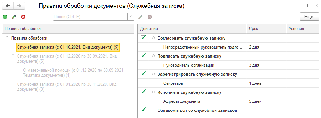 Разделение процессов вида документа в 1С:ДО 3.0 в разрезе правил обработки возможно по важности, грифам доступа, организации, подразделению и форме документа. По каждому новому правилу обработки можно корректировать задачи: будут ли они запускаться или нет, и список участников задач.