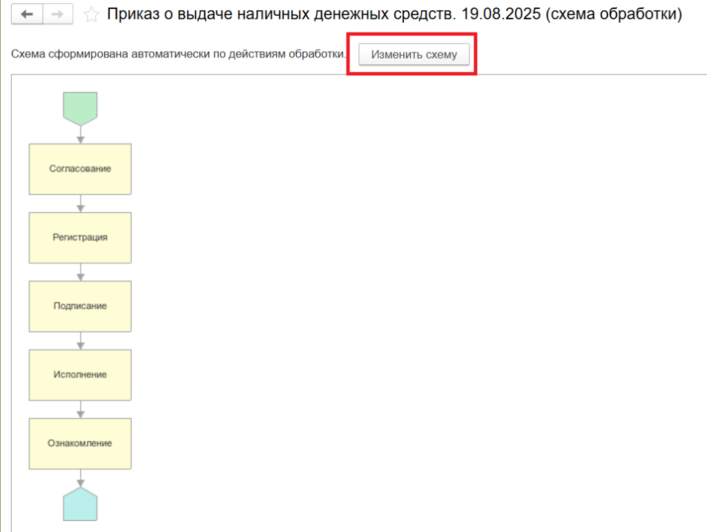 Для этого необходимо перейти на вкладке «Обработка» в стандартную схему и нажать «Изменить схему»: