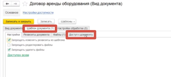 3. Перейти во вкладку «Шаблоны документа» – «Доступ к документу»,