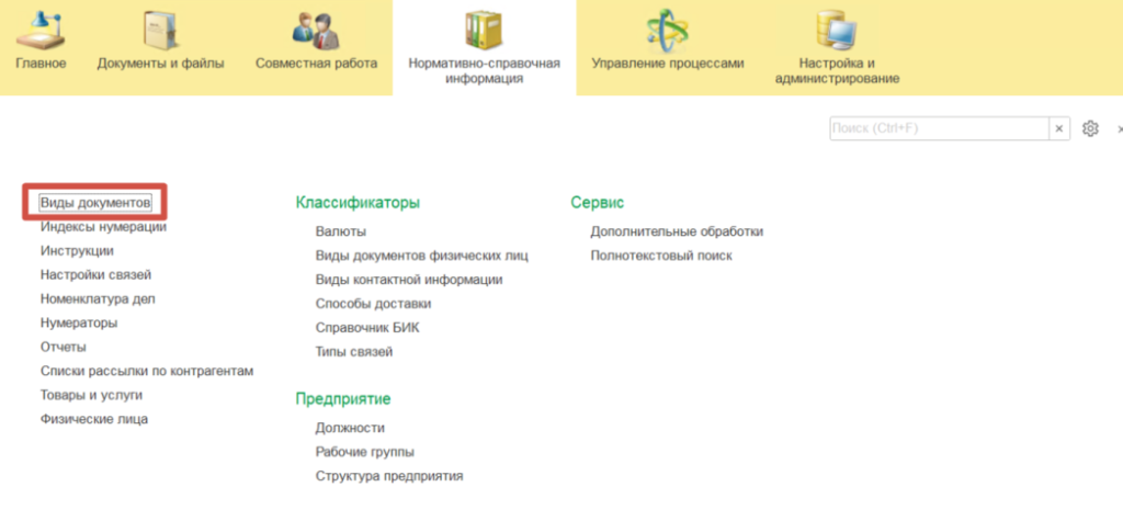 Работа с ними осуществляется через «Документы» и «Виды документов» – посредством «Группы документов» или «Папки документов».