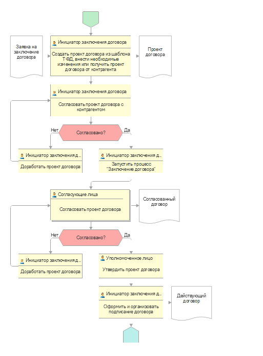– Обязательные этапы согласования (система не даст отправить договор без визы юриста).